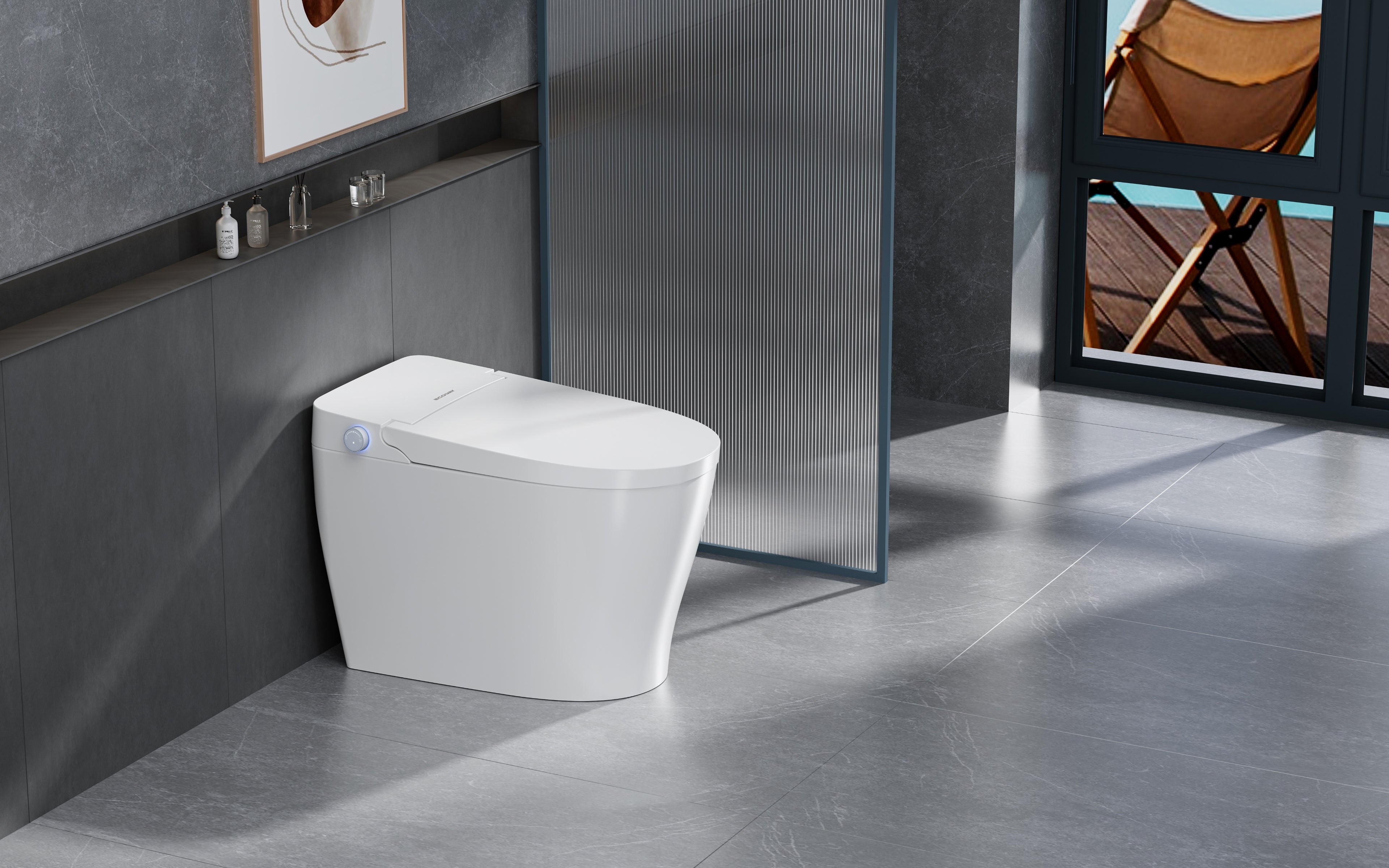 A built-in deodorizer instantly eliminates unpleasant smells, maintaining a fresh bathroom environment.